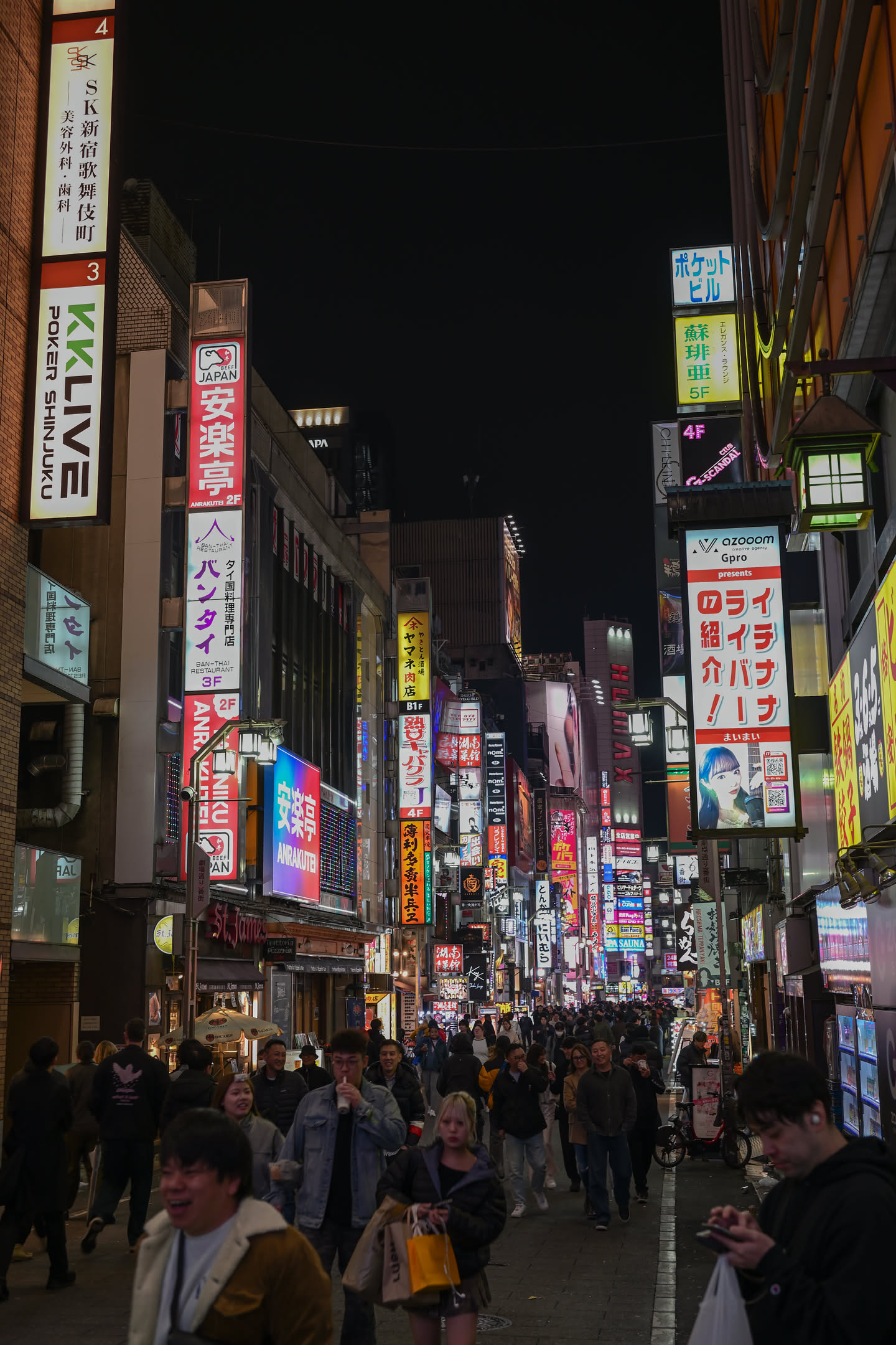 晚饭后去著名的歌舞伎町一番街看看,也不知道该干什么,只是作为必来的打卡点逛完了,好多拉客的小姐姐和黑人啊,另外真的很热闹,这附近的人不太像东京人呢,乘坐最后一班电车回到了酒店,电车上的喧闹声、大家身上的酒气与微醺的红脸,和白天的西装革履落针可闻,令我疑惑,这真是同一个城市的同一批人吗?